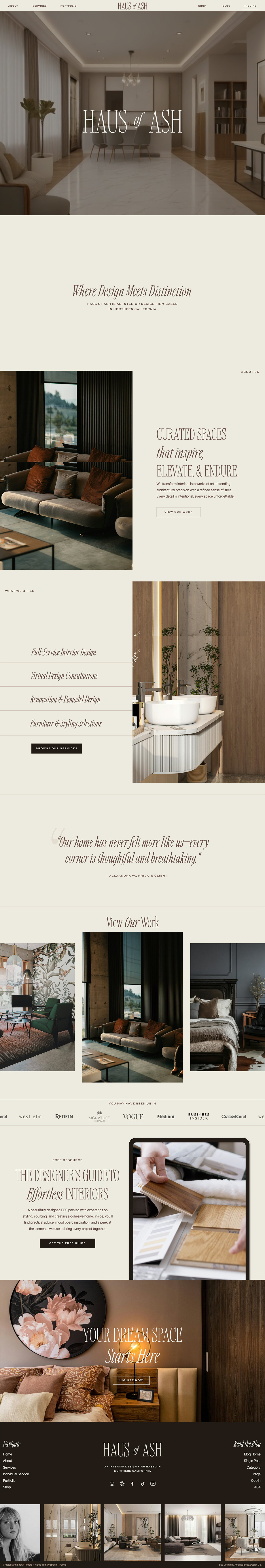 The Ash Template is a modern, image-driven Showit website design created specifically for interior designers who want to showcase their work in a polished, professional way.