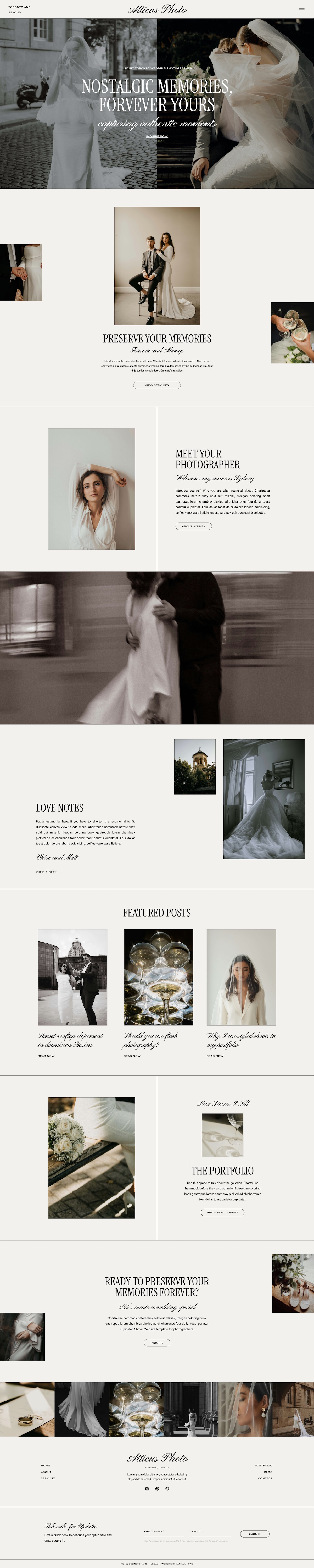 Atticus is a fully customizable, modern, and editorial template designed to beautifully showcase your work. Perfect for photographers, wedding professionals and creatives, it offers multiple gallery styles to show off your portfolio, a ready-to-go blog, and pre-designed freebie opt-in to help grow your email list. Just upload your content, make it your own, and you’re ready to launch!