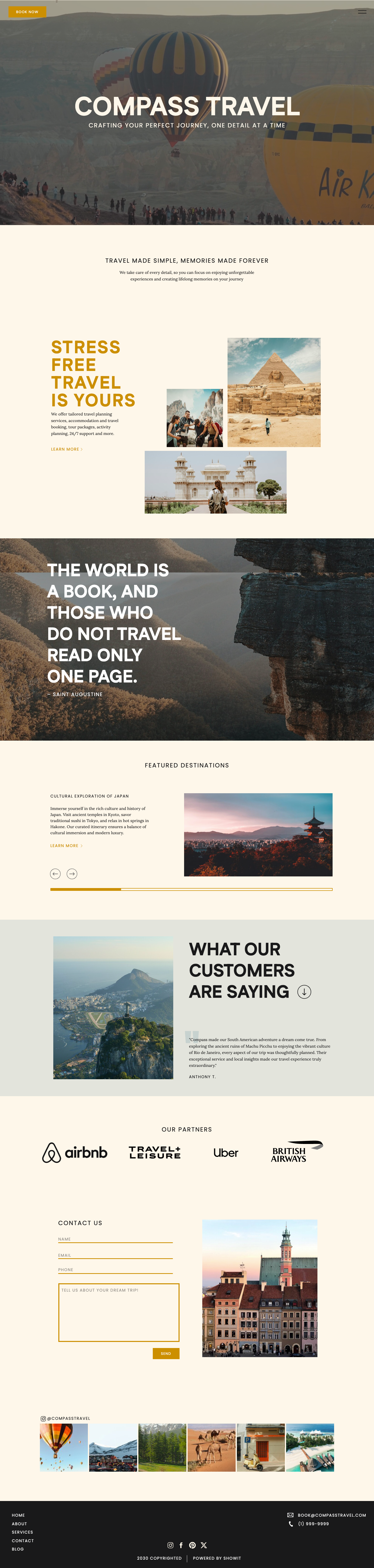 Every canvas in Compass is crafted to inspire possibility while keeping the path forward clear. Fully customizable, it’s designed to grow alongside your business, whether that means adding new destinations, expanding your blog, or refining your brand as your offerings evolve. Compass is more than a site; it’s the starting point for journeys worth remembering.