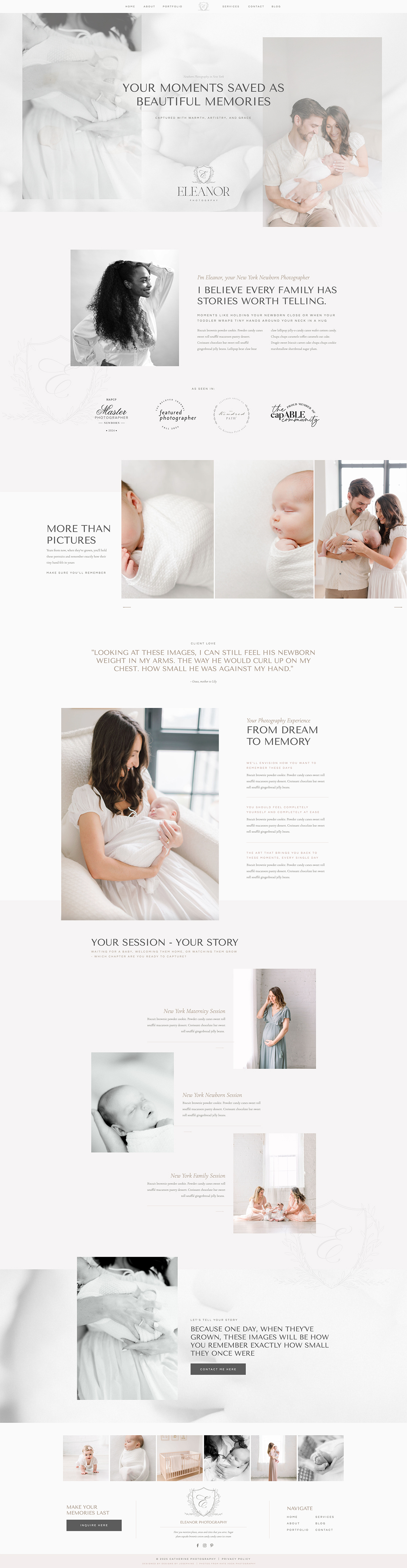 Made for motherhood and family photographers who want a clean, soft, and easy-to-use website. The design gives you a natural flow to share your session types, show your galleries, and guide clients through your experience without distractions.
