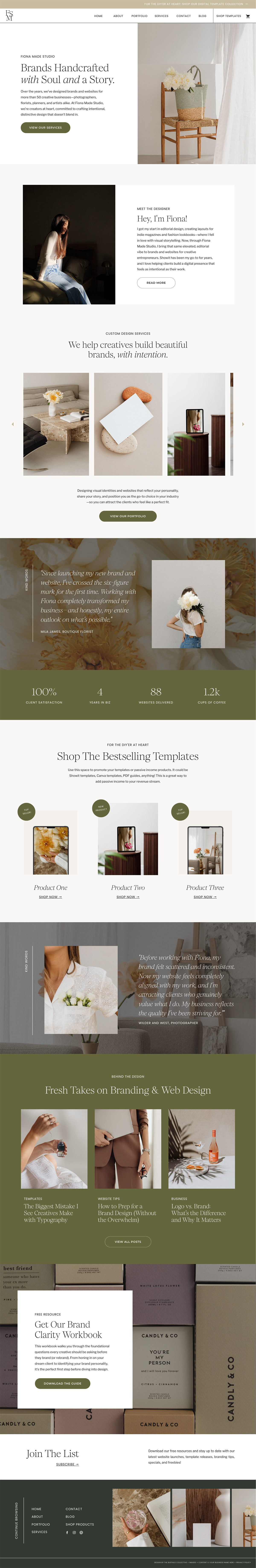 Packed with everything you need to grow your business including sales pages for digital products and services, countdown timers, testimonial sections, and a full blog layout. Every detail of Fiona is crafted with purpose. Clean, modern, and conversion-minded, it’s the perfect foundation to showcase your work, attract aligned clients, and position your design business for its next level.