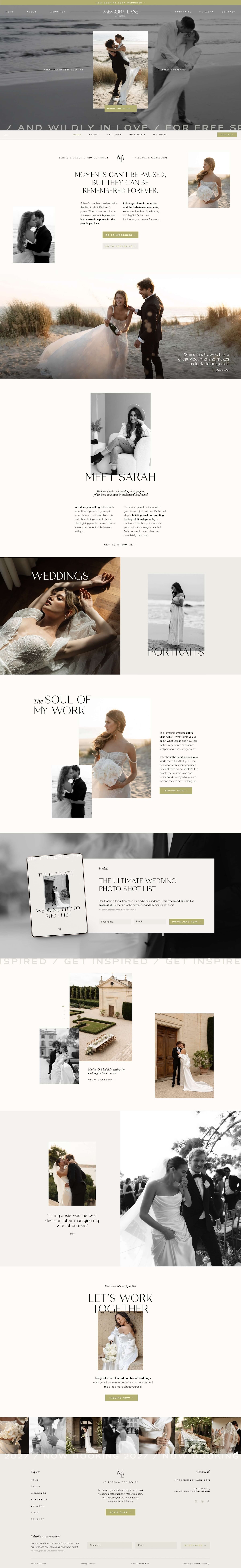 Clean. Timeless. Quietly confident. Memory Lane is a Showit template made for wedding photographers who believe less really is more, and who want their work to take center stage. With plenty of white space, soft details, and a refined layout, this template gives your images room to breathe and your story space to shine.