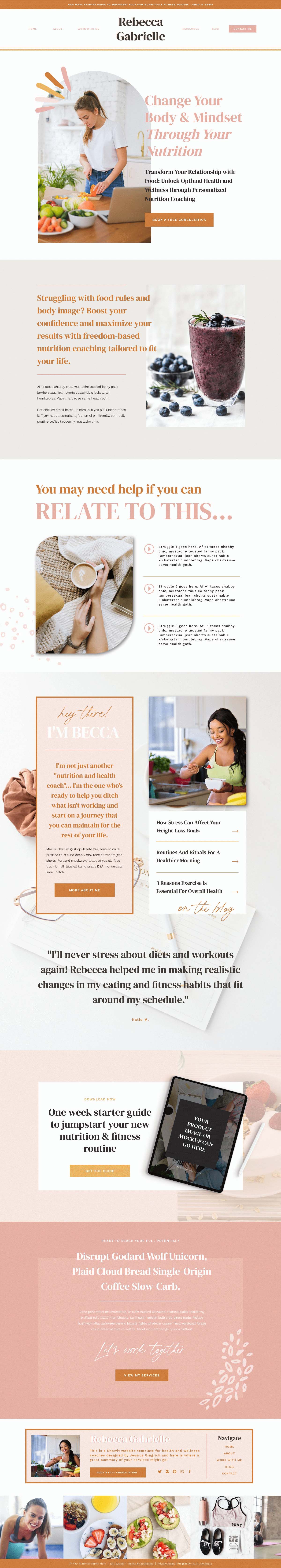 Rebecca Gabrielle is clean, purpose-driven, and transformation-focused — a premium Showit template built for nutrition coaches, wellness mentors, and health advocates who deliver both strategy and heart. With clear messaging zones, welcoming structure, and sections built for story, services, and lead magnets, this design lets your expertise shine without throwing up all your content at once. It’s ideal for someone who wants a site that feels both trustworthy and energized from the first scroll.